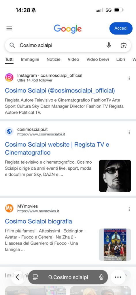 Vi riportiamo quella di Cosimo Scialpi regista DAZN che non riusciva ad ottenere un knowledge panel e che ogni tanto gli compariva con informazioni frammentarie.